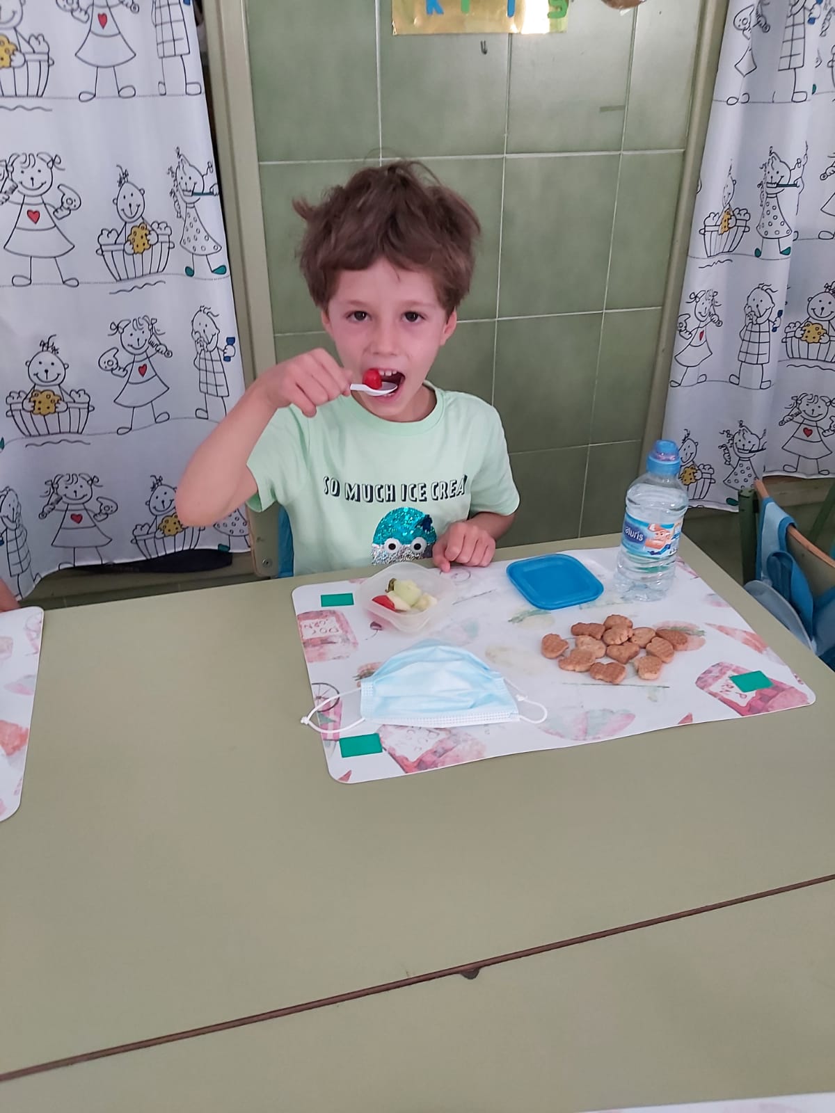 Hoy hemos degustado ensalada con calabacín y lechuga del huerto y tomate cherrys, nos ha encantado.